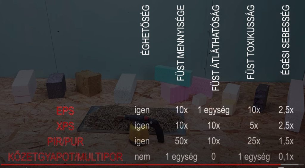 … és a legfontosabb: a füst toxikussága 2.5x rosszabb, mint az egyébként elég toxikus EPSnél. Magyarul tűz/füst esetén szinte biztos a füstmérgezés.