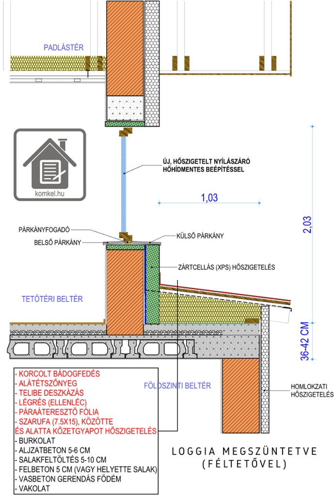 (ÉRTELEMSZERŰEN EBBEN AZ ESETBEN A LOGGIA KIESIK A LAKHATÓ/HASZNÁLHATÓ TÉRBŐL, A FÉLTETŐ NEM JÁRHATÓ, VISZONT GARANTÁLTAN BEÁZÁS ÉS HŐHÍDMENTES MEGOLDÁS, VISZONYLAG OLCSÓN)