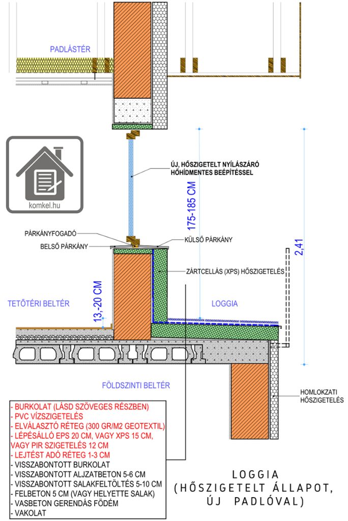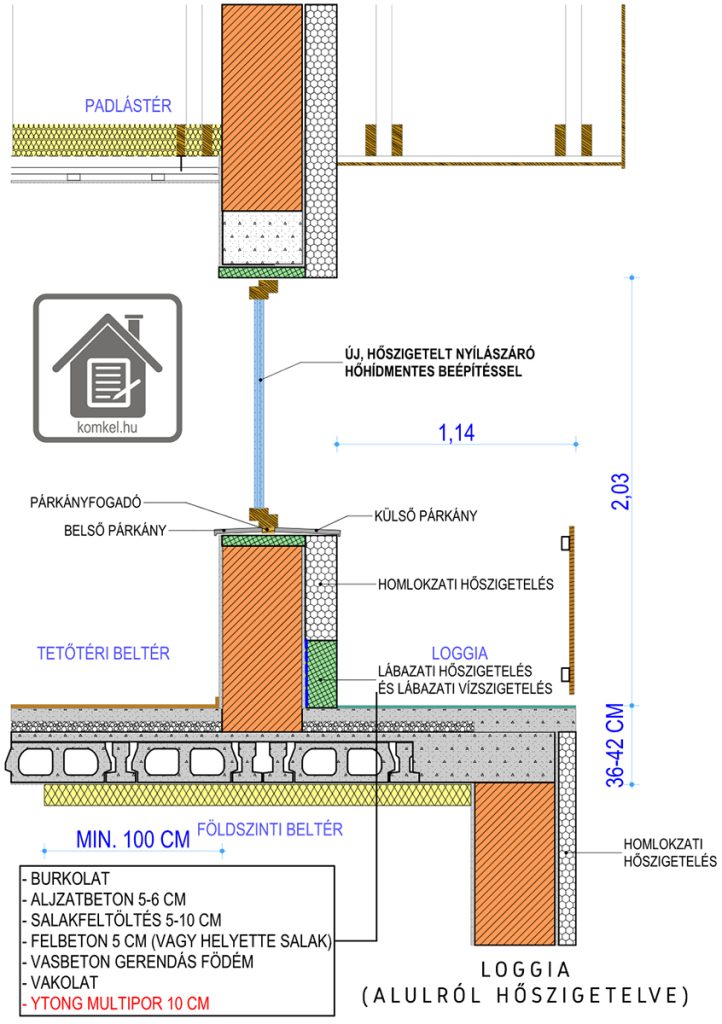Arra is oda kell figyelni, hogy ne csak a loggia alatt közvetlenül legyen hőszigetelve a födém, hanem 1 métert még ezen túlnyújtva.