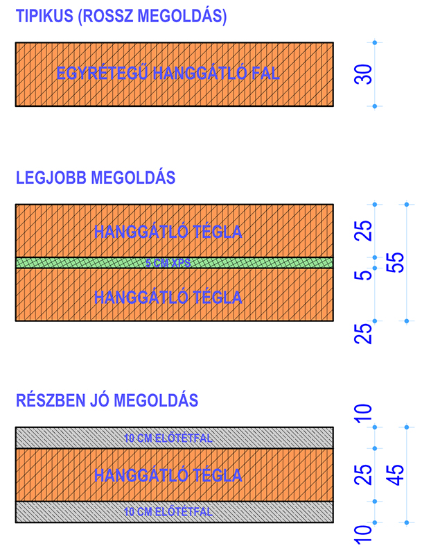 Teljesen mindegy, hogy milyen hanggátló téglából, vagy akár vasbetonból van a fal, teljesen mindegy a vastagsága. Egyrétegű? Akkor nem, és kész.